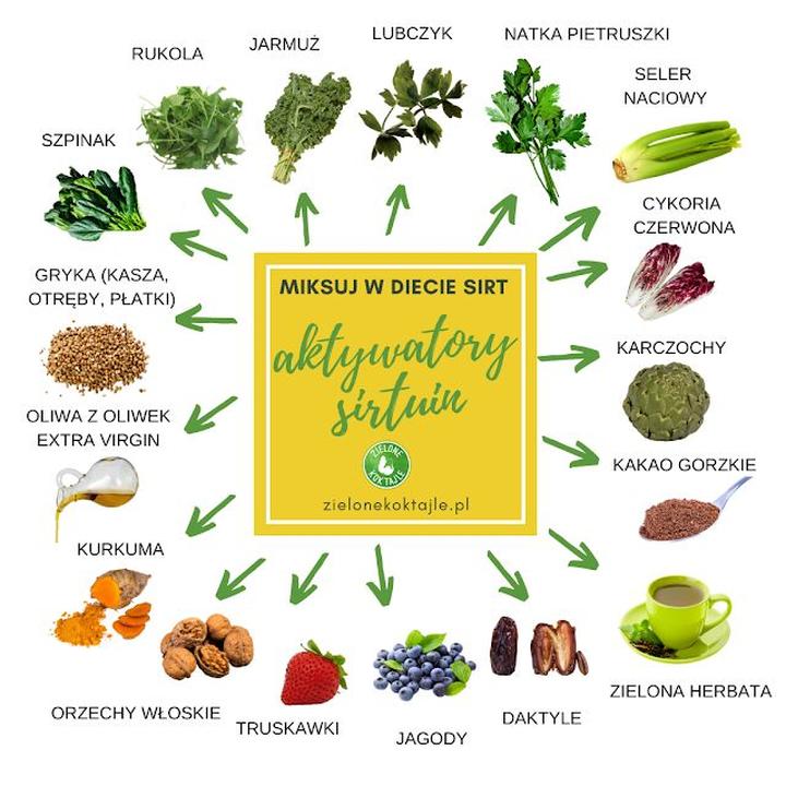Oto kilka kluczowych produktów, które warto włączyć do diety SIRT: