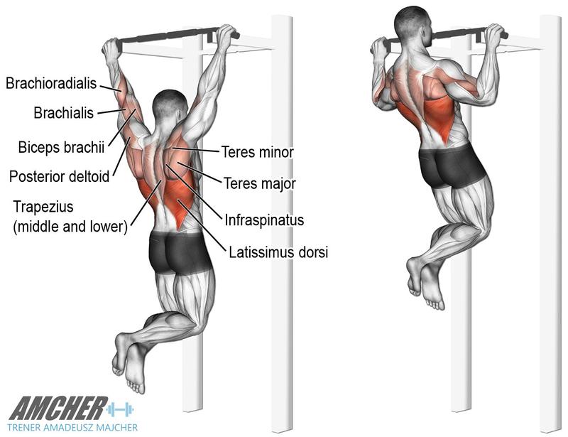 Oto lista mięśni zaangażowanych podczas podciągania na drążku: